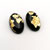 Ohrclips schwarz mit Silbermetall zum Oval handgeschliffen