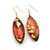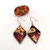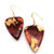 Ohrhänger, rautenförmig handgeschliffen aus Acrylglas coloriert in ausdrucksvollen Erdtönen mit rot geflammten Goldmetalleinschluss, Fischerhaken Sterlingsilber vergoldet. Auf Wunsch Ergänzung mit passendem Ring möglich.