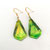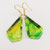 Dekorative Ohrhänger in Tropfenform coloriert in grün- gelben Farbnuancen mit Fischerhaken Sterlingsilber.