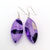 Unikatohrhänger in Blattform, lila-transparent mit Fischerhaken Sterlingsilber vergoldet